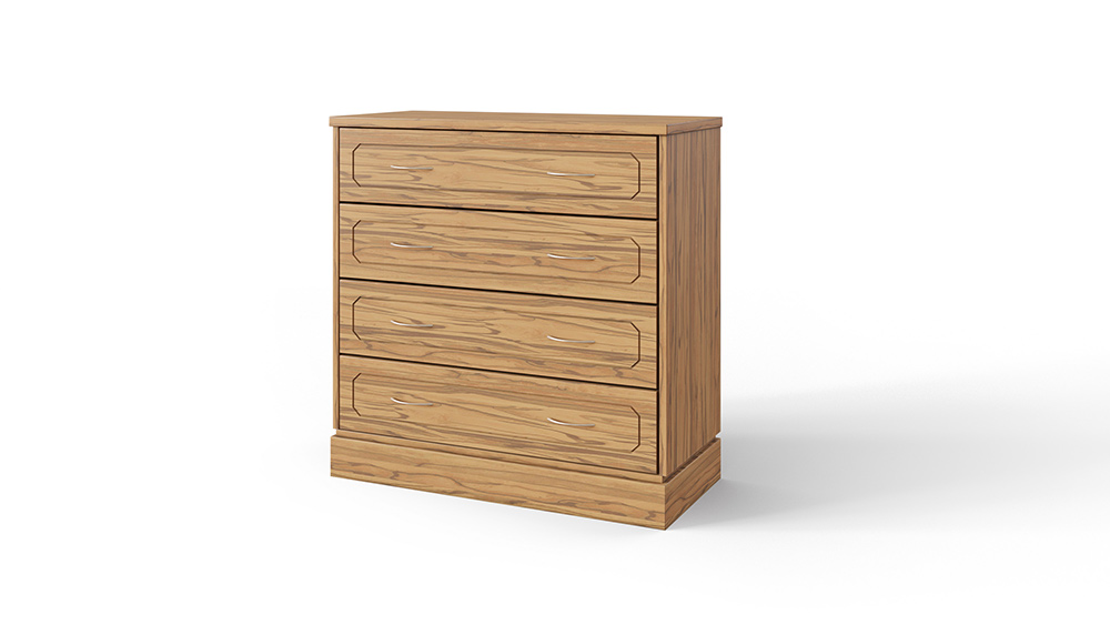 Комод выполнен в современном стиле «массивный минимализм», отличительной особенностью которого является четко выверенная простота в комбинации прямых углов элементов конструкции и декора. 4 выдвижных ящика комода, оснащены роликовыми телескопическими направляющими с увеличенным сроком службы, имеют профессионально фрезерованные фасады толщиной 21 мм с тщательно подобранной лицевой фурнитурой от лидеров мирового рынка. Опционально выдвижные ящики комода могут быть оснащены телескопическими направляющими с системой автоматического дозакрытия ящика. Толщина цельноламельного мебельного щита из массива ценных пород древесины, используемого на лицевых поверхностях изделия составляет 21 мм. Мебельный щит используемый в остальной конструкции имеет толщину 12 мм. Лакокрасочное покрытие от ведущих производителей Италии и Испании не только придает изысканность, подчеркивает натуральность и благородство натуральной древесины, но надежно защищает мебель от воздействий окружающей среды и механических повреждений. Сборка не требуется. Dreamline
